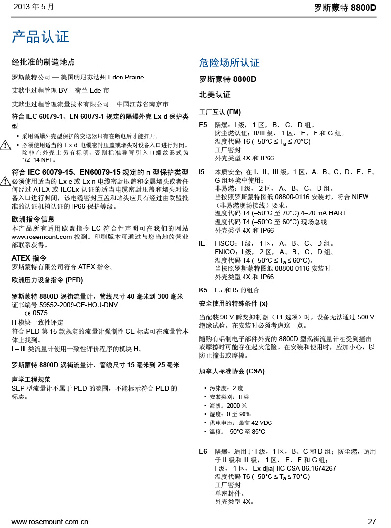名稱:羅斯蒙特 8800D 系列渦街流量計(jì)